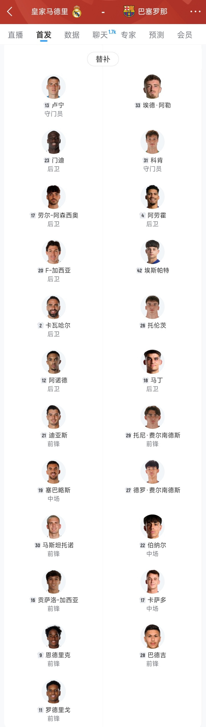 那场比赛的巴萨替补席上,身价最高的是3500万欧元的阿劳霍,11名球员中有8人年龄在20岁以下,其中德罗·费尔南德斯和托尼·费尔南德斯只有17岁。
