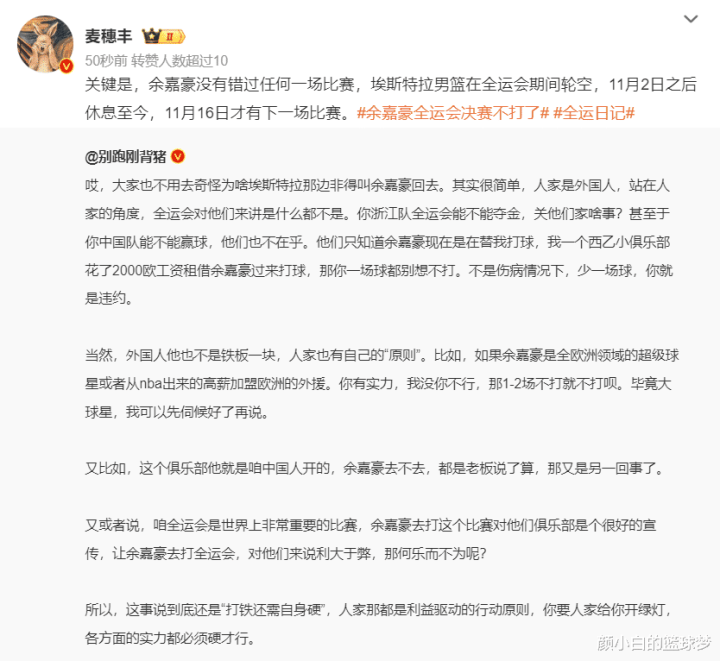 很多人媒体人也在社媒上发生了争执,觉得西乙俱乐部不通人情,也有博主认为余嘉豪必须遵守俱乐部的指令,毕竟人家是出钱请你去打球的。